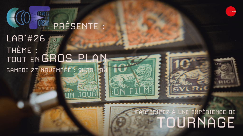 Pour cette édition, on fera un film sur le thème  » gros plan ». La façon de traiter ce sujet sera décidé le matin du Lab’. Pensez à amener des costumes et accessoires.